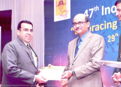 Receiving best paper runner up prize by Dr. Debyendu Mazumdar ( President Dental Council of india) during 47th IOC 8th Asia Pacific Orthodontic conference, New Delhi